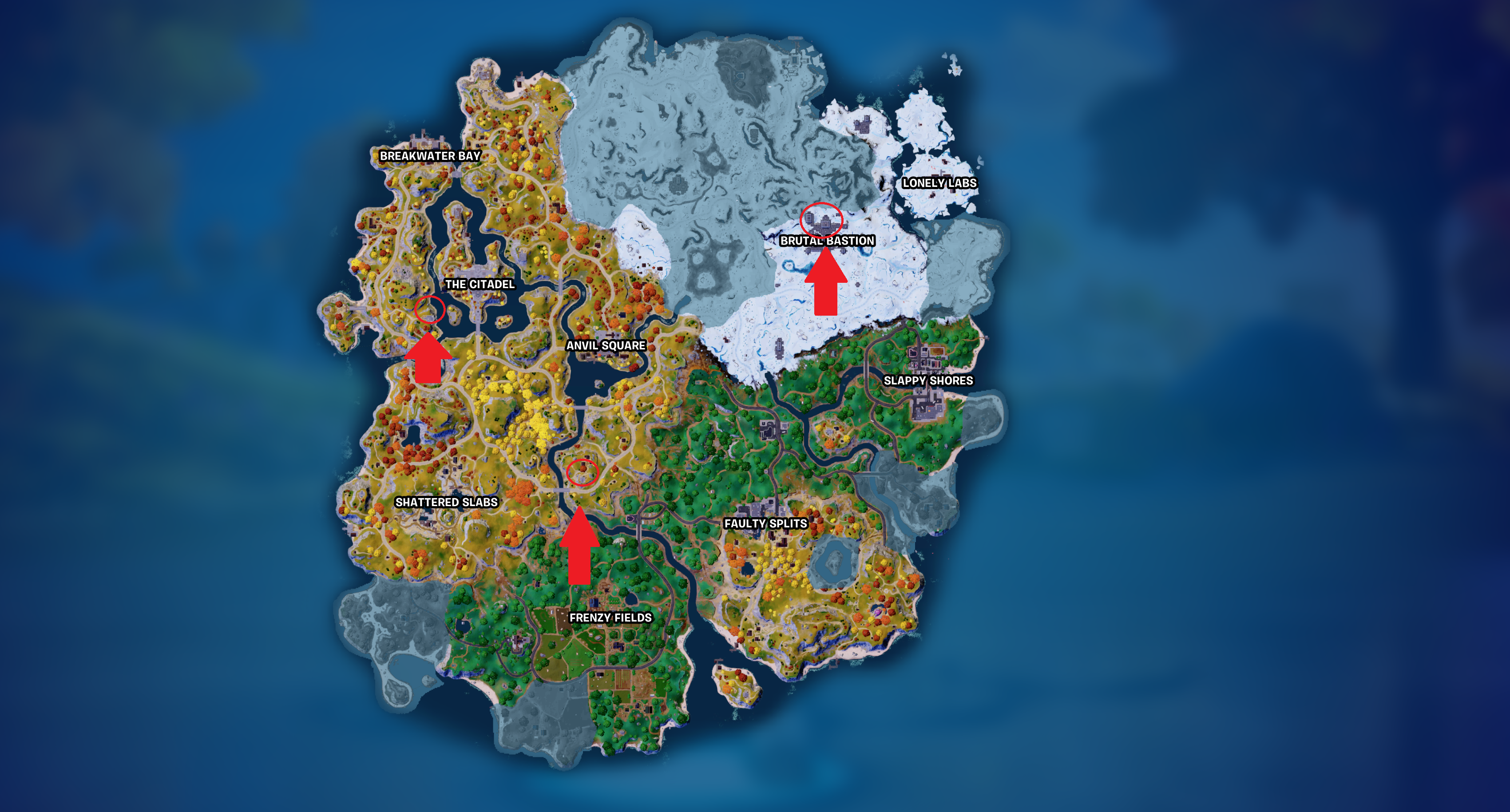 Here’s one of the spots they’ll be at: Shattered Slabs is an easy to find location, and this rise is on the minimap right above the letter “D” in Shattered Slabs.