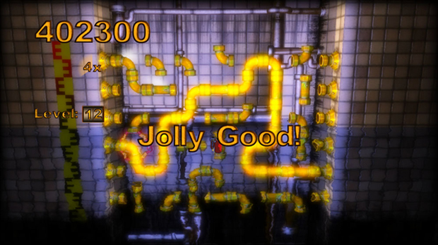 Not that the concept matters too much, but I like the flavor. In the game, you keep water from flooding by creating pathways of pipes from one side of the screen to the other. Making paths reduces the water level, but connecting pipes increases pressure and, thusly, the speed at which water fills.