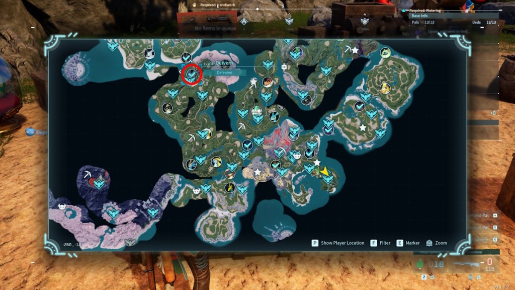By the time you’re level 20, you should already have a good lay of the land in Palworld. You’ll know the spawns of Alpha Pals near the initial spawn point, and perhaps already have a couple in your possession. If you haven’t already, you can find an Alpha Pal Quivern on the opposite side of the main island on which you begin your journey. It’s easily reachable if you have a Pal mount.