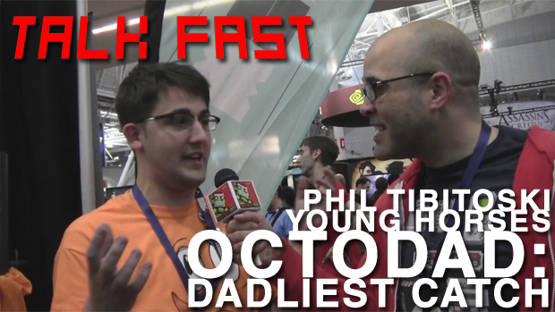 Jonathan Holmes is a maniac. He’s been running around PAX East shoving microphones in faces and forcing immediate and swift responses. In this installment of Talk Fast, Holmes pins down Phil Tibitoski of Young Horses to get a straight dirt summary of Octodad: Dadliest Catch.