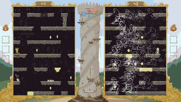 The video above walks through the basic premise of Super Tower Rush, which is that you and a friend (soon to be foe) are at the top of a tower and must race to the bottom. Along the way, you’ll dodge obstacles and screw one another over with curses. There’s not a whole lot to the game, but what’s there is no-nonsense, arcade-style fun.