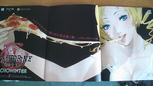 Currently billed as a “horror action-adventure”, the team promises that Catherine will be more adult-themed than past games they’ve made. Shoji Meguro, who’s composing for the title, noted that keywords for the game’s music include “classic”, “adult-oriented”, and “erotic”. Looking at leaked Famitsu scans (check them out below), I can certainly confirm the latter two. There’s an official site here, but as of this writing it’s blank. Expect the game around “Winter 2010” for the PlayStation 3 and Xbox 360.