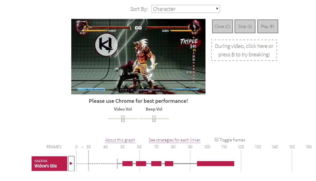 In short, it’s a way to practice the timing of breaking shadow linkers in your browser, so long as you use Chrome to iron out all the kinks. Every character is represented, and you can use the B key or click on the page to practice your timing on a small graph below a video of the combo. To be clear the video isn’t interactive and merely plays out the combo, but you’ll be able to test out your timing.