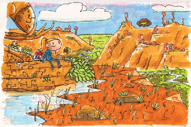 Over the Summer of 2011, Chris posted a new piece in his collection every day depicting Zero Suit Samus doing things that any intergalactic bounty hunter would do on her day off — you know, things like flying a kite, exercising, and helmet shopping with her best bud baby Metroid!