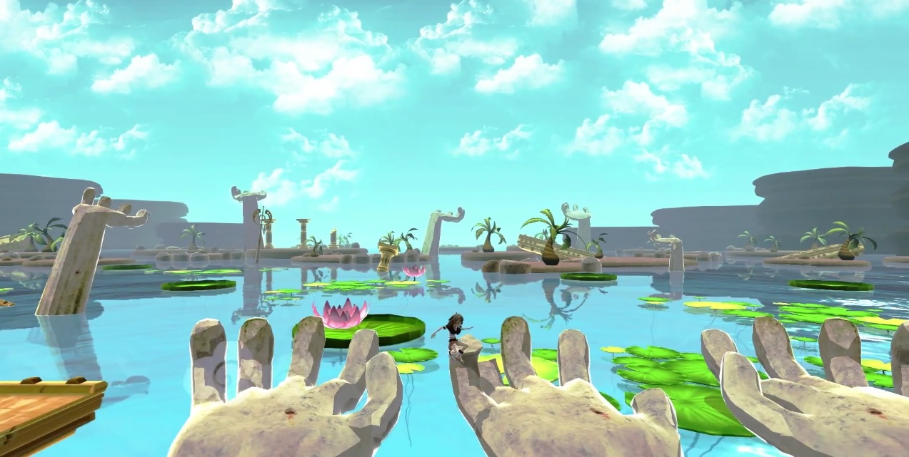 Over the course of the roughly 15-minute demo, I slowly acquired three core powers, each linked to a different dimension and, conveniently, to a color on the Xbox controller — blue (X, jump), yellow (Y, sprint), and red (B, attack). By swapping these dimensions one at a time, players can temporarily take advantage of its specific buff, or switch out platforms and objects that correspond to that pigment.