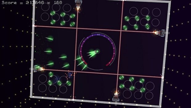 If you’re wondering about the pulse attack used to clear bullets in the footage above, here’s the interesting part: it can turn enemies into multiplier tokens. But if you wipe out too many foes with your pulse blast, there won’t be anything left to shoot for points. Interesting design.