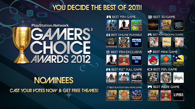 The 2012 nominees for PSN Gamers’ Choice Awards are: