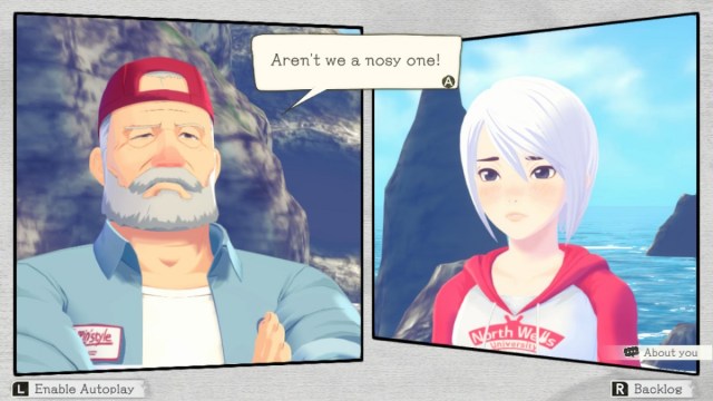 That may be of great comfort for some people. The second game, in particular, has you wandering about a peaceful and weirdly deserted small town. It’s slow in a way that some might find relaxing. In some ways, it reminded me of Deadly Premonition’s take on small-town life, but for all the issues in that game’s storytelling, it at least had interesting characters. I want to know more about the ship captain that appears in the beginning of Two Memories. He seems cool. I don’t really care that some of the teen characters play in a band. Sometimes, that feels like the only thing that some adults know that teenagers do.
