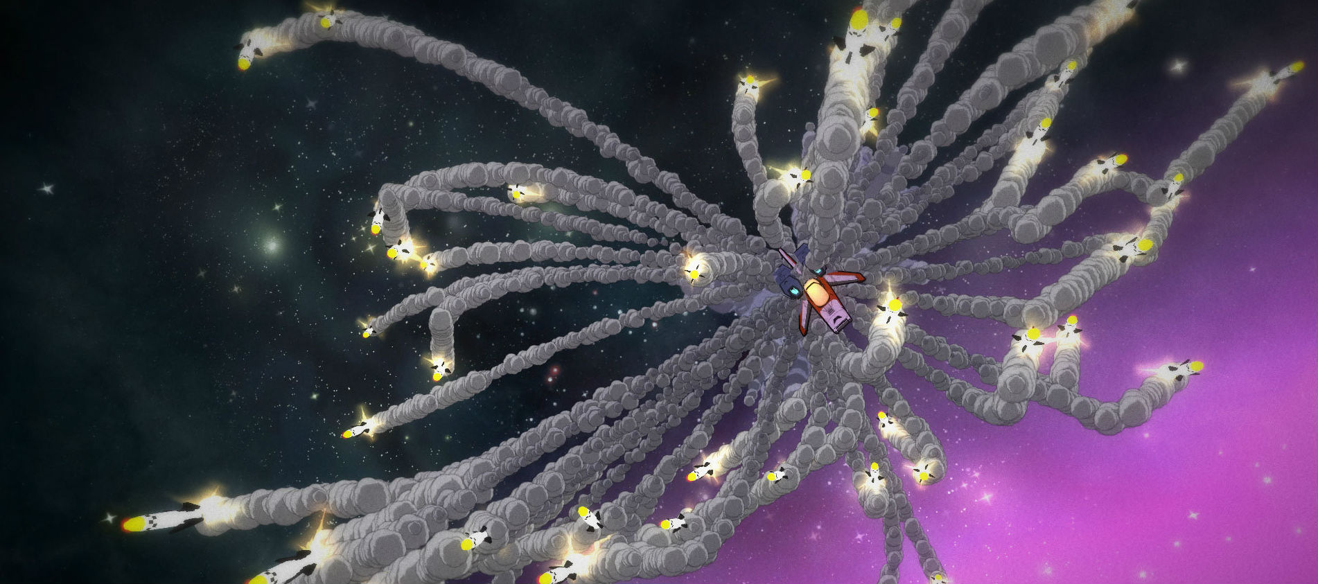This is easier to swallow because of the endearing anime style of the game. It’s a love letter to classic franchises like Gundam, but it manages to pack in a ton of 17-bit’s signature look, from the decals plastered on the ships to the delightful VCR-styled menu screens. I also love the minimalist approach to storytelling, as each level may provide you with unique tidbits on the game’s world, which are remixed, so to speak, after death. Having said that, I think the voice acting is dreadful, and not in a “so bad it’s good way.” Thankfully there isn’t a whole lot of it.