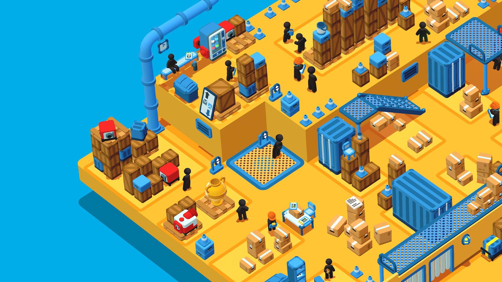 While there is a way to complete each task in Good Job! without breaking anything, thus securing the “S” ranking for that room, it’s far more entertaining to treat each challenge like it’s a party you’re throwing at somebody else’s Air BnB. And don’t worry, because you’re the boss’s kid, nobody will ever get mad at you. From slingshotting copiers through walls to unleashing a firehose on an unsuspecting set of cubicles, there is a lot of opportunity for mischief and mayhem on each floor. New tools such as forklifts, cleaning robots, and floor buffers only add to the antics, but you can’t just solve every challenge by tearing the place to shreds. There are small logical puzzles you’ll have to solve by observing the actions of the other people on the floor.