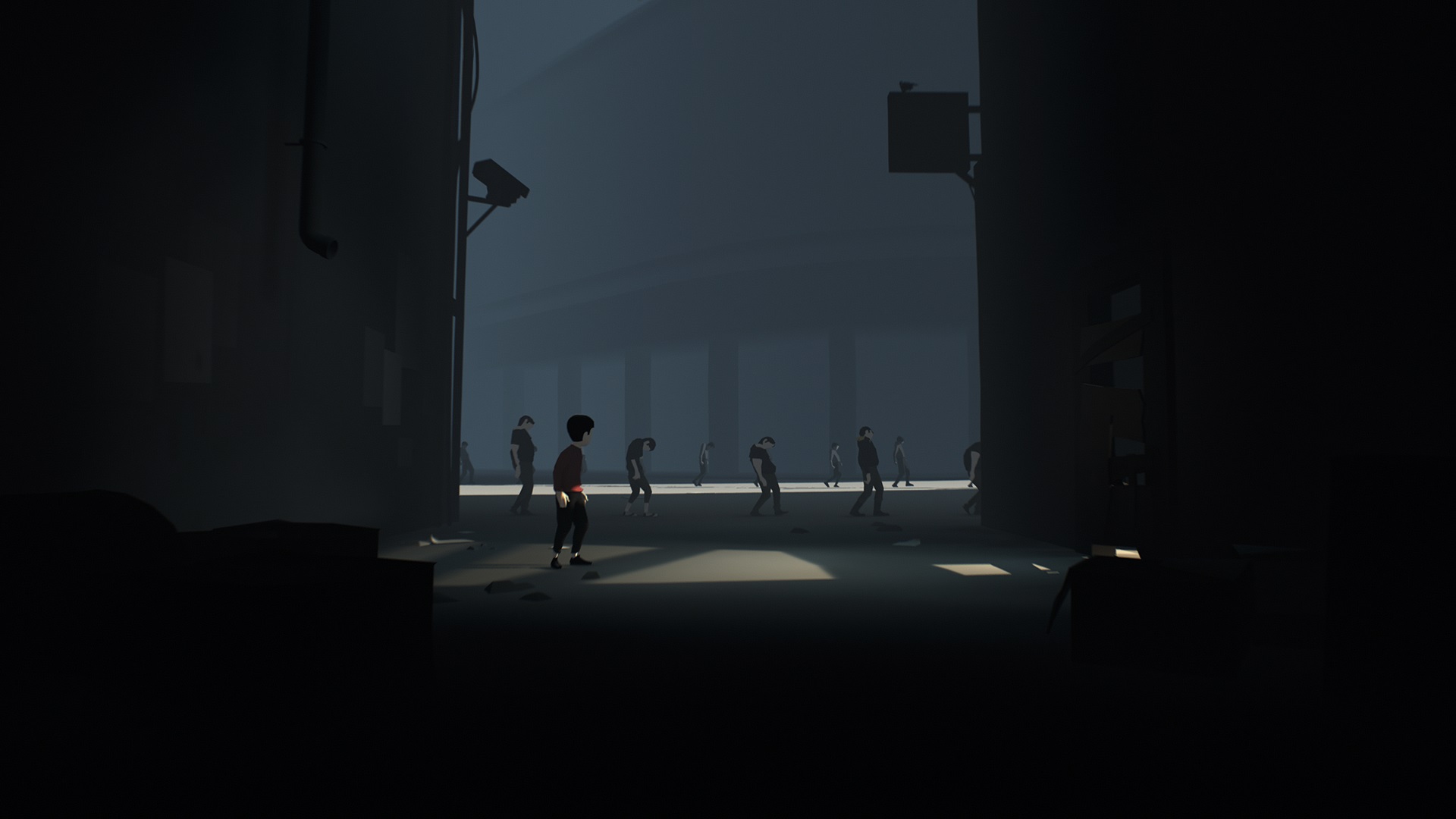An early sequence has the child joining a line of thoughtless humans slowly marching forward. It’s terrifying how quickly you also fall in line. Nine steps forward, stop, wait. Nine steps forward, stop, wait. Just like that, your autonomy is gone. Your expressive actions are reduced to exactly what everyone else is doing. For a few minutes, the boy operates as part of this machine and it’s incredibly effective and unsettling. Almost the rest of the game leaves him powerless and unsafe but free. It’s undoubtedly a better position.