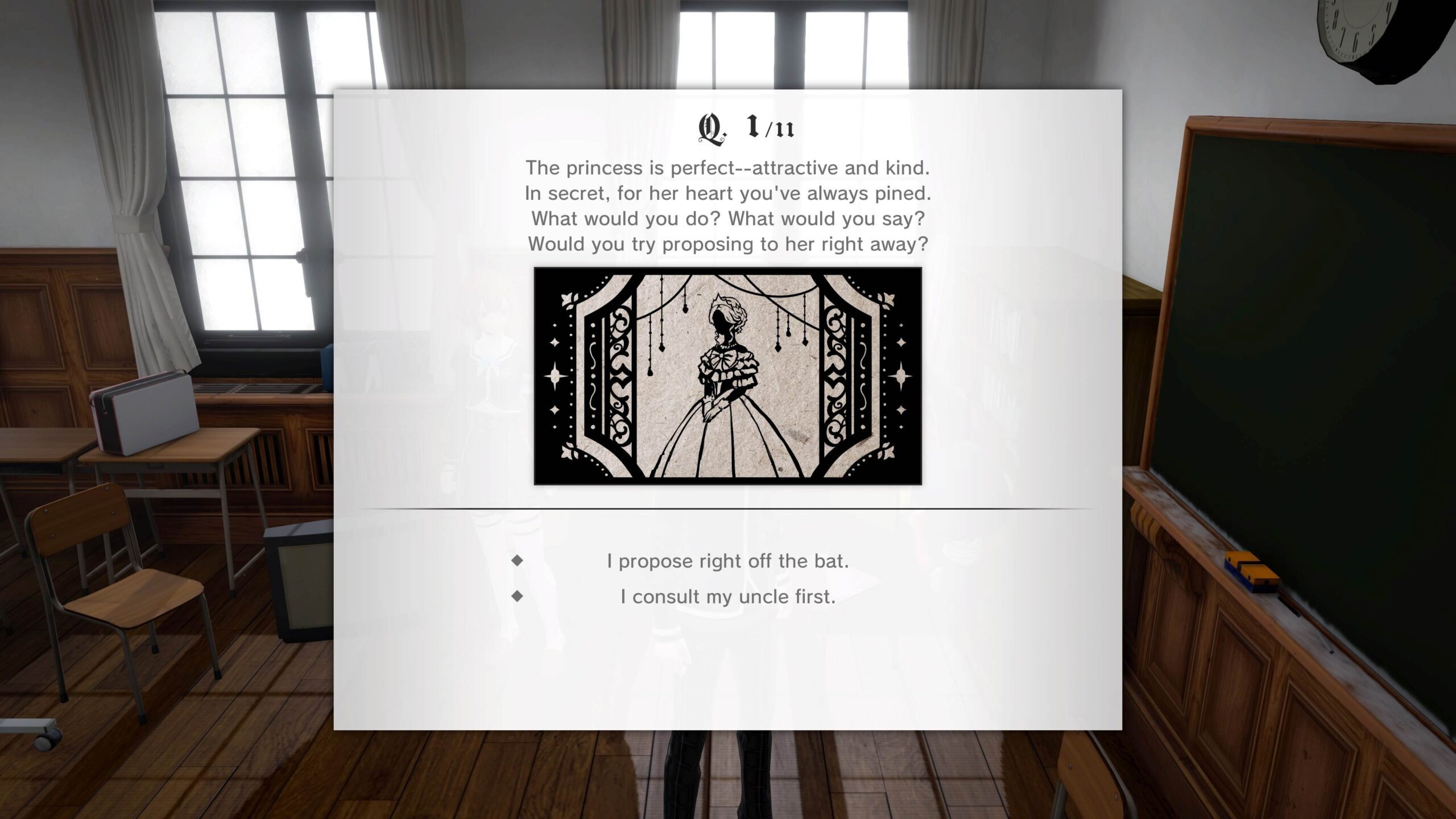 When you’re not exploring the mist, you’re battling, and that’s one of the main drawbacks of Monark. The actual combat of Monark is very interesting. Your party is made up of you, whichever human companion is accompanying you on this excursion, and fiends that embody your own desires. Personality quizzes interspersed throughout the story and around the campus basically Myers-Briggs your own desires onto a chart, graphing your attunement to the seven deadly sins.