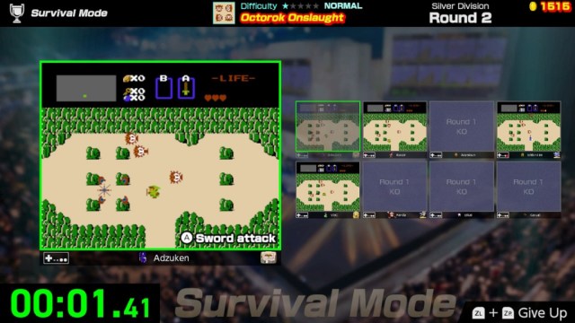 Survival mode isn’t a live competition. The runs are done by real players, but you’re only facing off against their ghosts. This means that you can keep retrying a division until you get a set of players who all fumble the events. This also means that if you get placed against a player who is an actual speedrunner, you can try your luck again for a set of dilettantes more your level. I know that when I saw a player complete a Super Mario Bros. 2 by hopping across Beezos, my blood ran cold. That’s fine, as Survival mode is more for your own entertainment as a stand-in for the local multi-player.