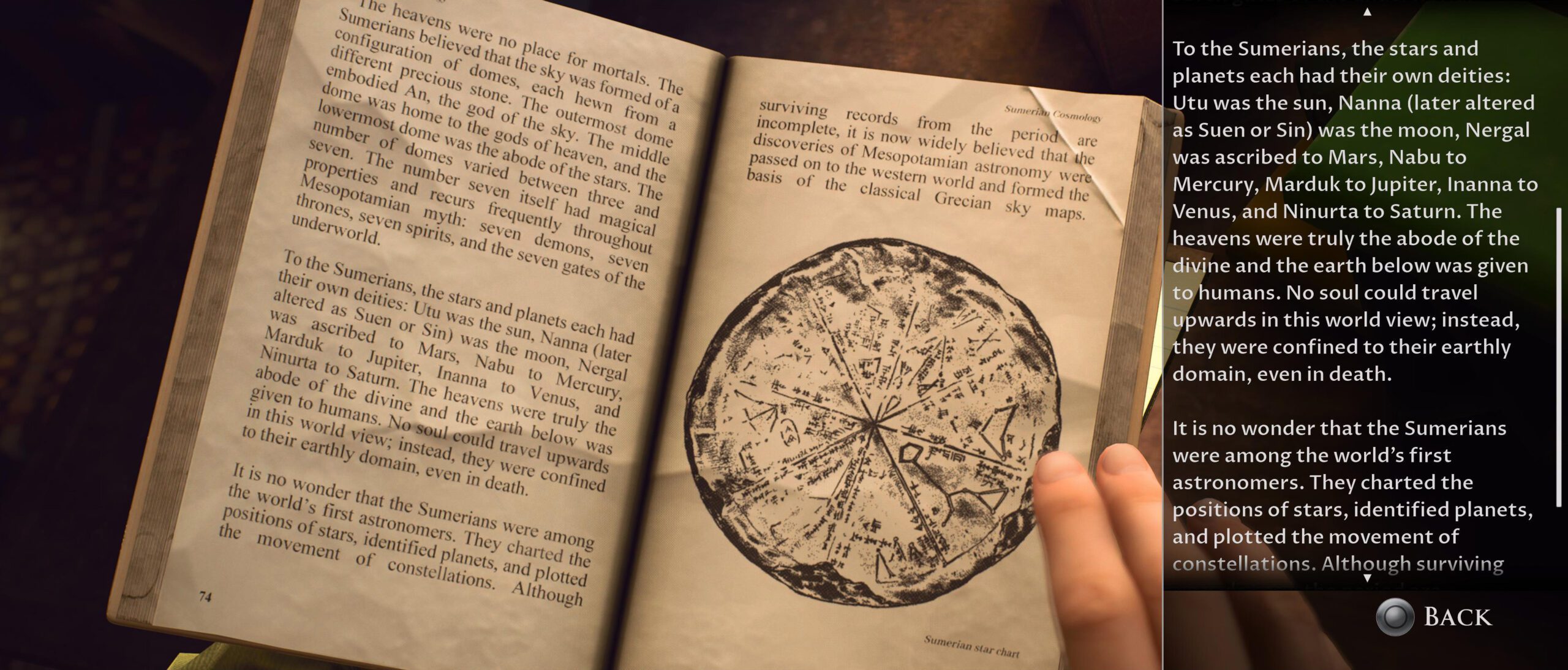 I do like the third-person camera here (as opposed to fixed angles), and I also appreciated that some of the collectibles — scattered bits of lore from 1940s archeologists— come with fully voiced story sequences. I will say, picking up these nicely preserved pages felt very “video game-y,” even more so than usual. I felt too safe while searching for them.