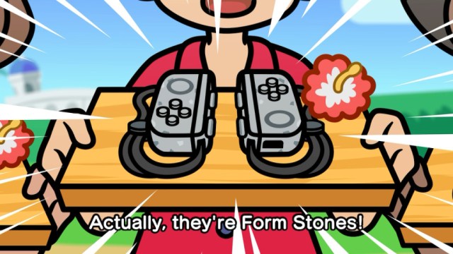 To be clear, yes, WarioWare: Move It (if you couldn’t tell from the name) is a motion control-only affair. For story mode, you’ll be using two Joy-Con in tandem for each player (to a maximum of two), and for the 2-4 player party mode, each person will be tied to one total Joy-Con. They’re referred to as “Form Stones” in the lore, and they fit like a glove.