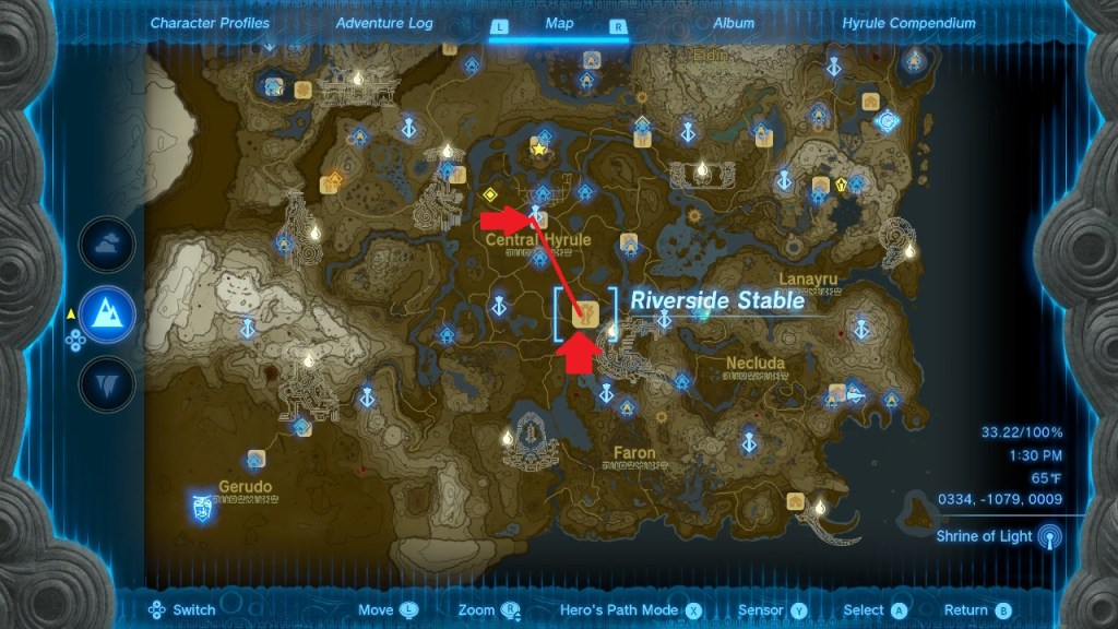 The Riverside Stable can be found southeast of Central Hyrule. It’s a short walk away from where you begin the game following the tutorial. It’s also strangely easy to miss, as you’ll generally be going northwest, southwest, northeast, and due east for the main story.