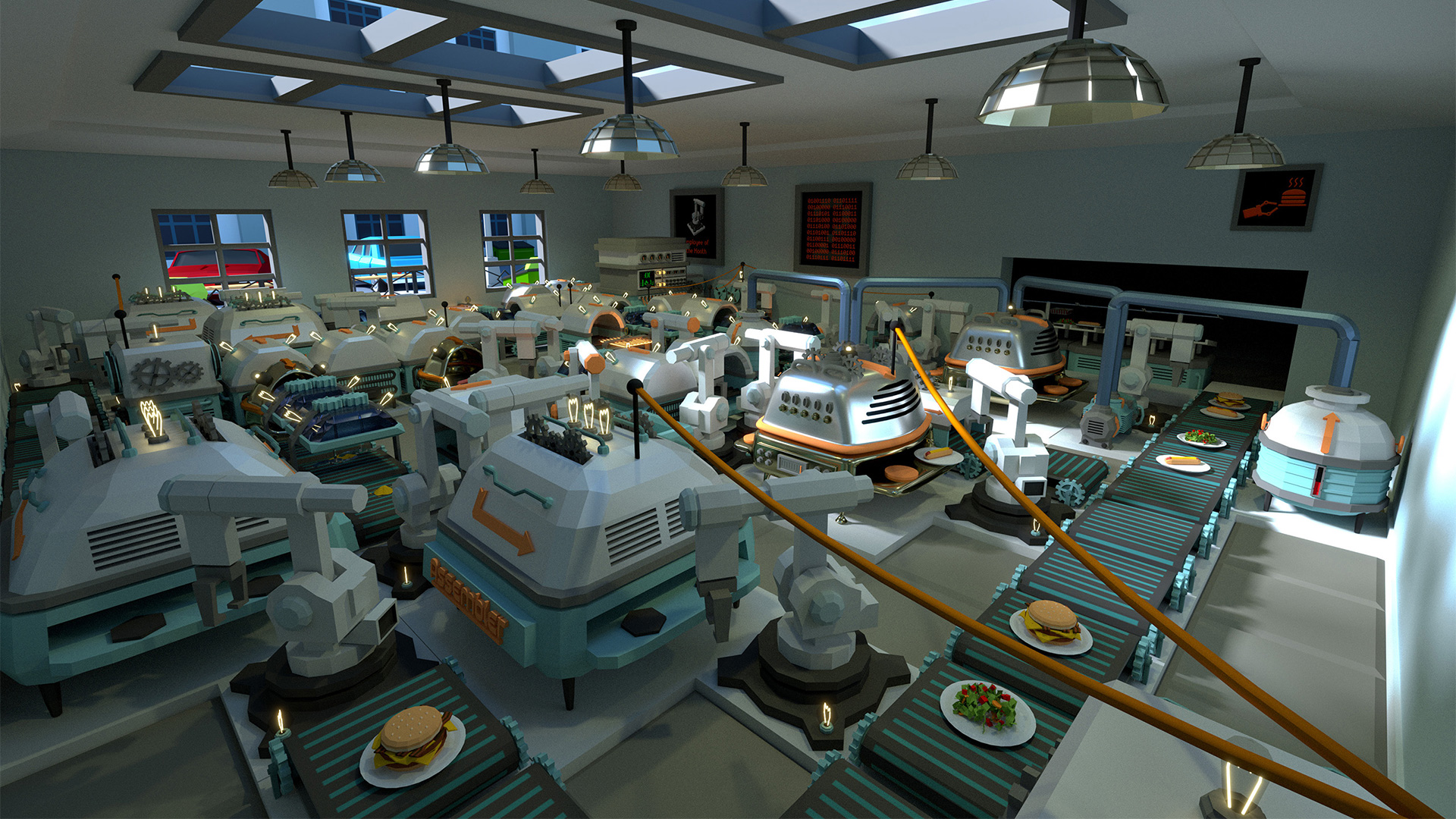 Structurally, the sim game will split its time between a more story-oriented campaign mode (in which “fellow human Robert Person” acts as your guide), a Contracts mode, and an unrestricted free-play mode. There’s said to be 50 different levels and a dozen dishes, some of which are quite intricate. What exactly goes into a Double Bypass Meal? Let’s just say the ingredient list lives up to that name.