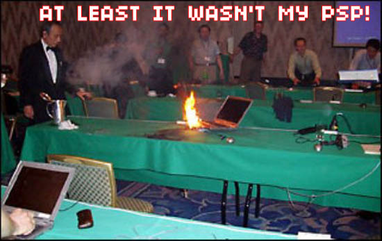 There’s a lesson here for everyone as well as a tip for Mr Nixon. The lesson is one of the RTFM variety, and it tells us to avoid using third-party, non-licensed accessories for our game systems. If you’re using the proper equipment, PSPs won’t just blow up (unlike some Sony laptop batteries).