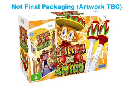 We have never been quite sure that Gearbox’s upcoming Wii title Samba De Amigo would include maracas like the Dreamcast version did. After all, the Wii Remote’s flexibility can definitely provide what Samba needs. Recently, though, a picture of the game’s box art has surfaced. As you can see, it proudly presents a maraca attachment for the Wii Remote. Kombo found the image in question at HMV‘s website. While we would love to say “maraca confirmed,” the disclaimer on the picture clearly states that the art is not final.
