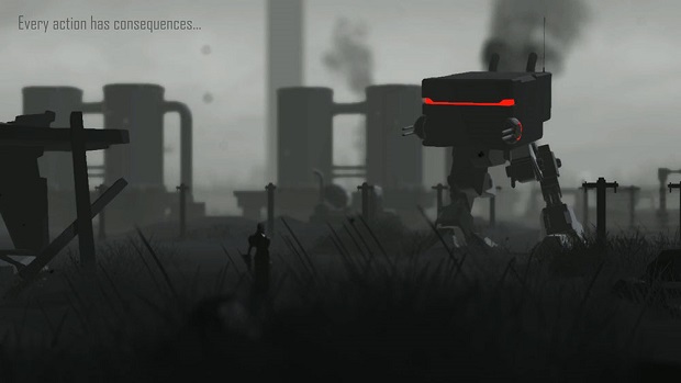 It looks stunning visually, bringing to mind the style popularized by indie darling LIMBO but to me it feels more palpable, less dreamlike in its presentation. The Natives and Machines seem far more threatening and oppressive than the shadowy figures that stalked you in Play Dead’s puzzle platformer. I found the hulking Sentinal particularly interesting. Perhaps in a nod to Kojima’s bipedal killing machines, its animal-like movements hint at an intelligence controlling the machine, something more reactive and calculating than a simple robot.