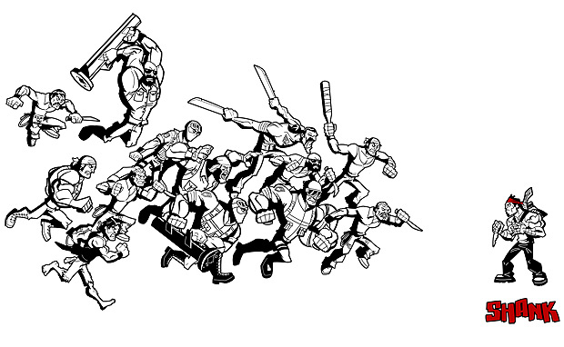 If you didn’t listen to Podtoid 114, you might’ve never heard of Klei Entertainment‘s Shank. Since it doesn’t have a publisher or a platform (although I did demo it with an Xbox 360 controller) and was only announced at PAX a few weeks ago, that’s quite alright. For a quick look at Shank‘s pedigree, keep in mind that Klei also developed both Eets games (for which they received an enormous grant from the Canadian government) and N+.