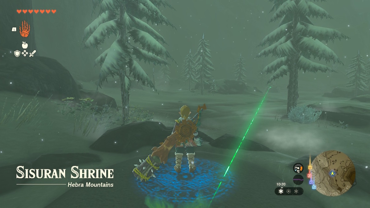 Sisuran Shrine is located in the Hebra Mountains area of Hyrule. To reach the shrine in the freezing weather, you’ll need to wear some sort of cold-resistant clothing or utilize some cold-resistant boosts. Due to the boss battle taking place outside, we recommend cold-resistant clothing like the Snowquill set available in Rito Village.