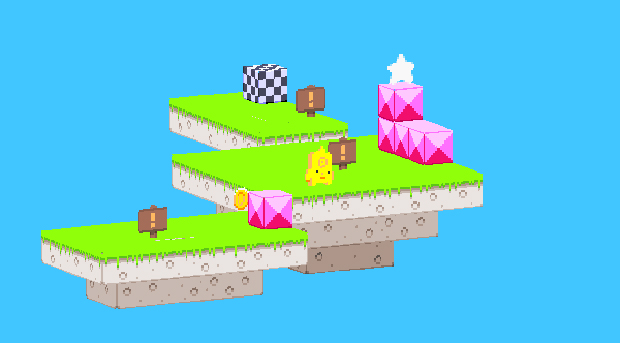 Well you’re in luck. Sky Island is a Flash game that takes the concept of Fez but does it for free. Don’t get too excited though. You get what you pay for. The game has an awesome little playable character (he/she is sort of a cross between Bullseye, Prymatt Conehead, and a yellow cookie) but the game is otherwise unspectacular. It takes the central perspective-shifting gameplay hook from Fez, slows everything, shrinks the level size, removes the dialog and the characters, and turns the whole thing into a shallow-but-charming little time-eater.