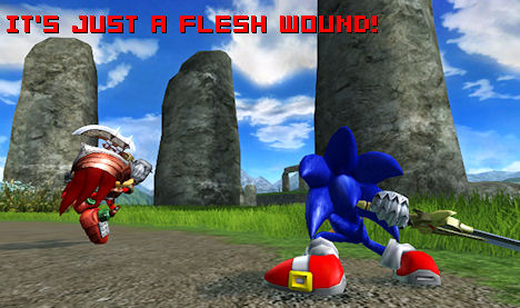 These new screens show off the sword-swinging hedgehog and a certain red echidna, who looks so very precious in his little suit of armor.