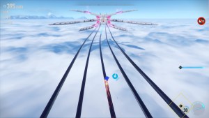 At this point, the Fortress will slowly approach you and attempt a bombing run. These projectiles are very slow and don’t really have a large radius, so just stay away from the Fortress (while following it) and you’ll be fine. After chasing it for a bit, the Fortress will unveil some rails in the sky: jump on them to start the real battle.