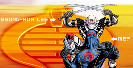The point (and I do have one): Lee has been signed to play the role of Storm Shadow in the upcoming film, which is set for release in August 2009 (according to the ever-reliable IMDB). He’ll be joined by Sienna Miller as The Baroness and Ray Park (X-Men‘s Toad) as Snake Eyes.