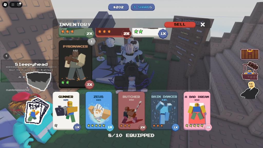 You can get new unit cards in Stud Tower Defense by opening Crates or by completing end-game quests. Individual cards can be equipped from your inventory, and you can even add the same card to the deck multiple times. However, there is a total limit of 10 cards you can have in a deck, or 15 if you have the Larger Deck gamepass that costs 110 Robux or 225 Shards. If you have too many cards, you can sell some in exchange for Cash.