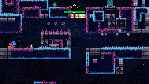 As you’ll see in the video above or .gifs on Kickstarter, the main mechanic here is protagonist III’s ability to teleport over obstacles, through enemies, or even around to the other side of the game screen — it wraps. That combined with wall jumping and vertical environments means there’s going to be some tough platforming to overcome. Also, puzzles and even boss fights.