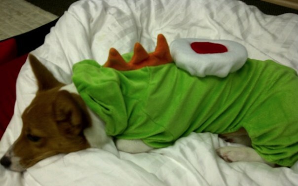 Corgi in a Yoshi outfit! Corgi in a Yoshi outfit!