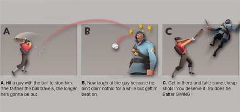 As was the case for the other TF2 classes, there’s a dedicated page for the Scout. Each day on the site, another part of the update will be unveiled; today, we’re getting a look at The Sandman, a collectible bat that can launch baseballs at its foes.
