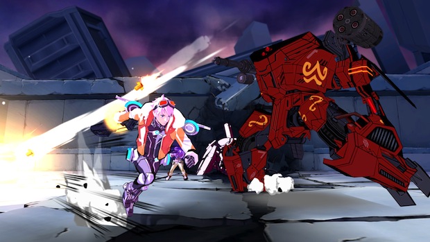 Inside the unlocked gate awaited a heavily armored mecha that I did not manage to take down, even with two helping companions. I blame its huge life bar. The situation was similar to a boss fight in a Lost Planet game, but the arcade-y play made it seem more fun and less like work.