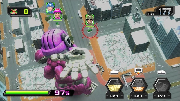 As a tank player, game play involves frantically driving around looking for openings to fire on the massive Kong. While stages are large, they’re still fenced in, which means that you can run, but not hide. Finding randomly scattered power-ups lets you hit the the Kong with a bit more firepower than you’d have with the standard weapon. Outside of this, playing as a tank could not be more simple, as you can only drive and shoot.