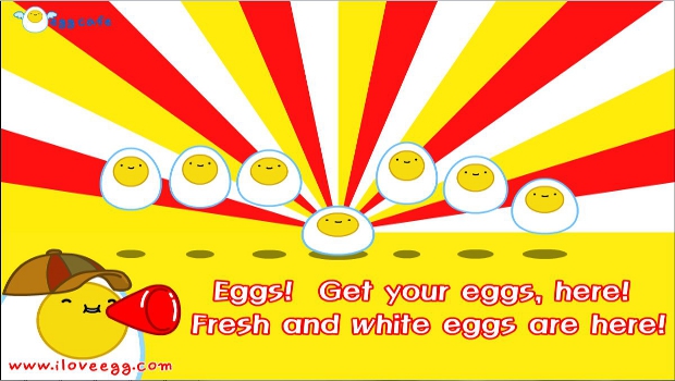 Eggs! Get your eggs, here! Fresh and white eggs are here! This song has been stuck in my head for the past week. Now the burden is on all of your shoulders.