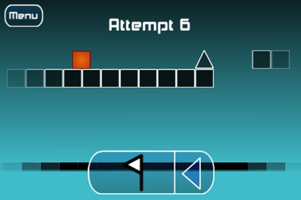 The game is very simple: You control an orange cube that moves automatically. You only control its jumps. You’ll work to successfully jump for as long as possible, avoiding the many obstacles that are set up to screw you over. Mess up and you start over.