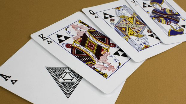Each suit is replaced by something from the Zelda realm, plus each of the face cards are represented by different Zelda character. Even the backsides of the card are adorned with Zelda imagery.