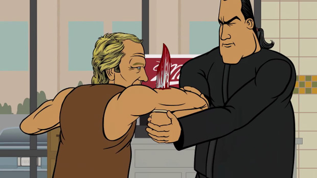 WHOA! Talk about a blast from the past! Back when I was in high school, there was this Flash animation crew called The Toilet Boys, and they made a three-episode series called The Steven Seagal Show, about Steven Seagal just being Steven Seagal. It was as glorious as it sounds!