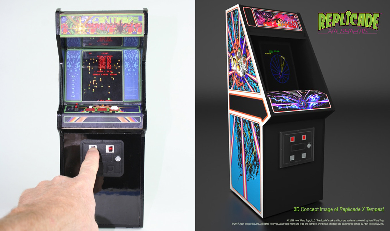 If you’re into this general “Honey, I shrunk the arcade cabinets” idea but aren’t the biggest Centipede fan, New Wave Toys announced that its next project will be a mini Tempest cabinet complete with tiny spinner controls. Of the two, that’d be my pick for sure. Centipede Kickstarter backers will get a “generous discount” for the Tempest machine once pre-orders “open later this year.”