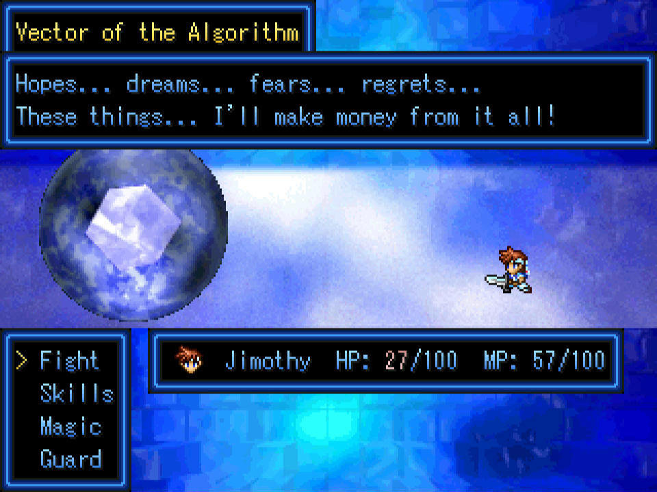That depiction of fate has really struck me since it’s something that I struggle with daily. And I’ll venture a guess that many of you have your own “fates” you’re battling too. Reframing fate in those terms has, weirdly, been mentally grounding for me. Whenever I feel myself staring too deep into that void, feeling hopeless as the world around us just seems weirder and dumber with each passing day, I try to remember Cid’s words. I don’t want to be a slave to fate. No matter how futile that may seem, it’s something I want to fight against.