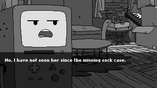 In the last story I wrote about the Adventure Time Game Making Frenzy, I said that if I had been able to participate in the game jam, then I would have made a point-and-click Noire Adventure game starring BMO. Well, what do you know, someone up and done made that game. It’s called Noire Time, and it was made by D. Micheal Moore. It is cute and great.