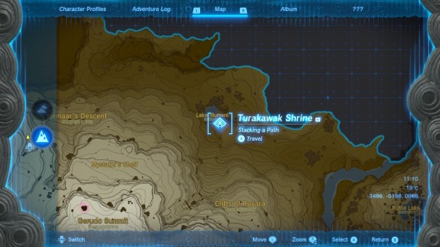 Nonetheless, heading almost directly north from the Gerudo Highlands tower is the easiest way to access Turakawak Shrine at the foot of the mountain range. It’s also possible to walk west from Lookout Landing, although it’s a great distance to travel on foot. Check the screenshot above for the exact location of the shrine on the map.