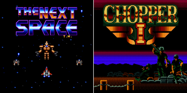 These both come from the golden arcade age in the late 1980’s, with vertical copter shooter Chopper I from 1988 and space shmup The Next Space from a year later.