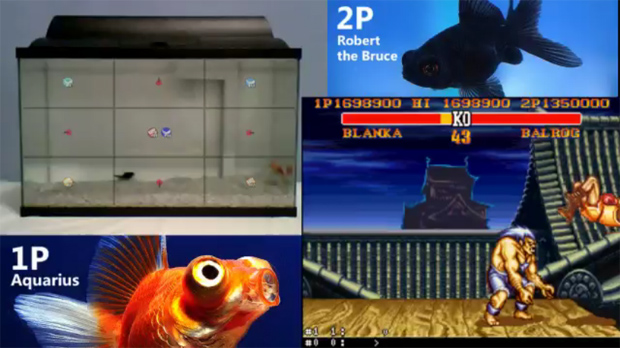 First there was a fish playing Pokémon over a Twitch stream like it was a human or something, and now we’ve got two fish fighting each other in Super Street Fighter II Turbo.
