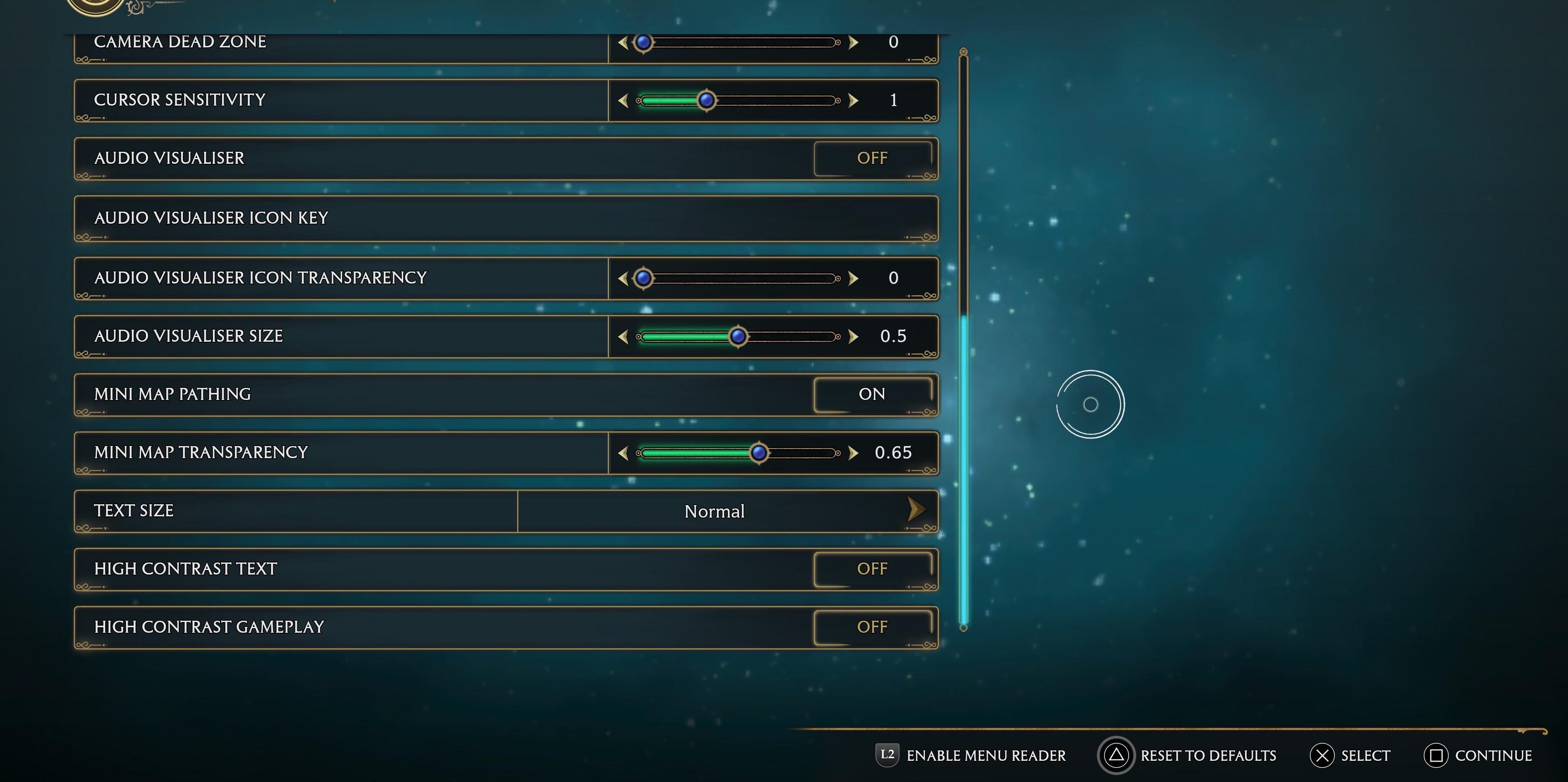 - Cursor Sensitibity (when moving around menus with a controller similar to the Destiny series)