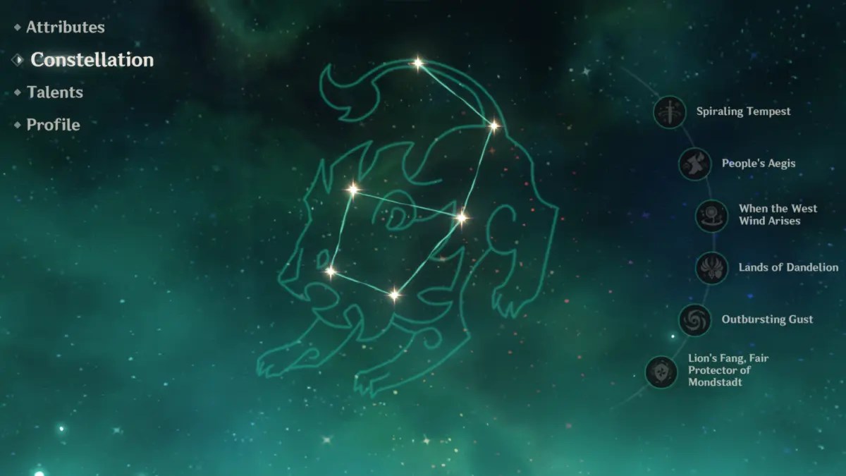 Lyney adores the spotlight, making him a natural Leo. He’s charismatic and charming, with a flair for the dramatic. Lyney’s constellation is Felis Fuscus, or “black cat.” Though Jean has a better-matching constellation in the shape of a lion, Lyney is by far a more typical Leo.