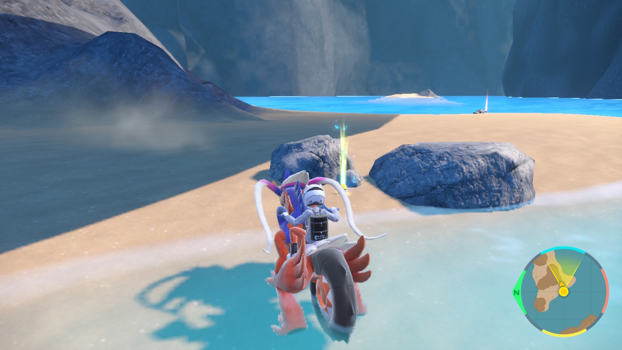 Brick Break is tucked away on a medium-sized island far in the northeastern corner of Paldea. The easiest route is a straight line from the North Province Area One Pokecenter. Just head northeast to the island, and when you reach the edge of the cliff, jump off. If you have the glide mount ability, you can simply coast to the island. If you can swim, you can make your way there with even less of an issue.