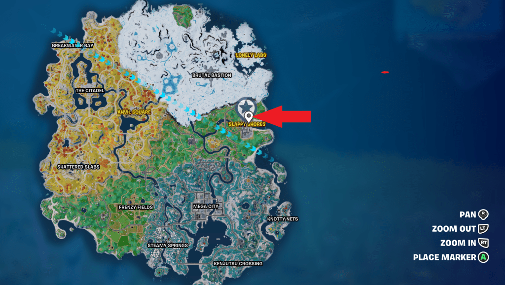 If you attempt to focus on the “purchase an item from Gwen” Week 11 quest, the game will inform you that she inhabits Slappy Shores. Here’s the thing though: she moves around from match to match, and does not have a static location.